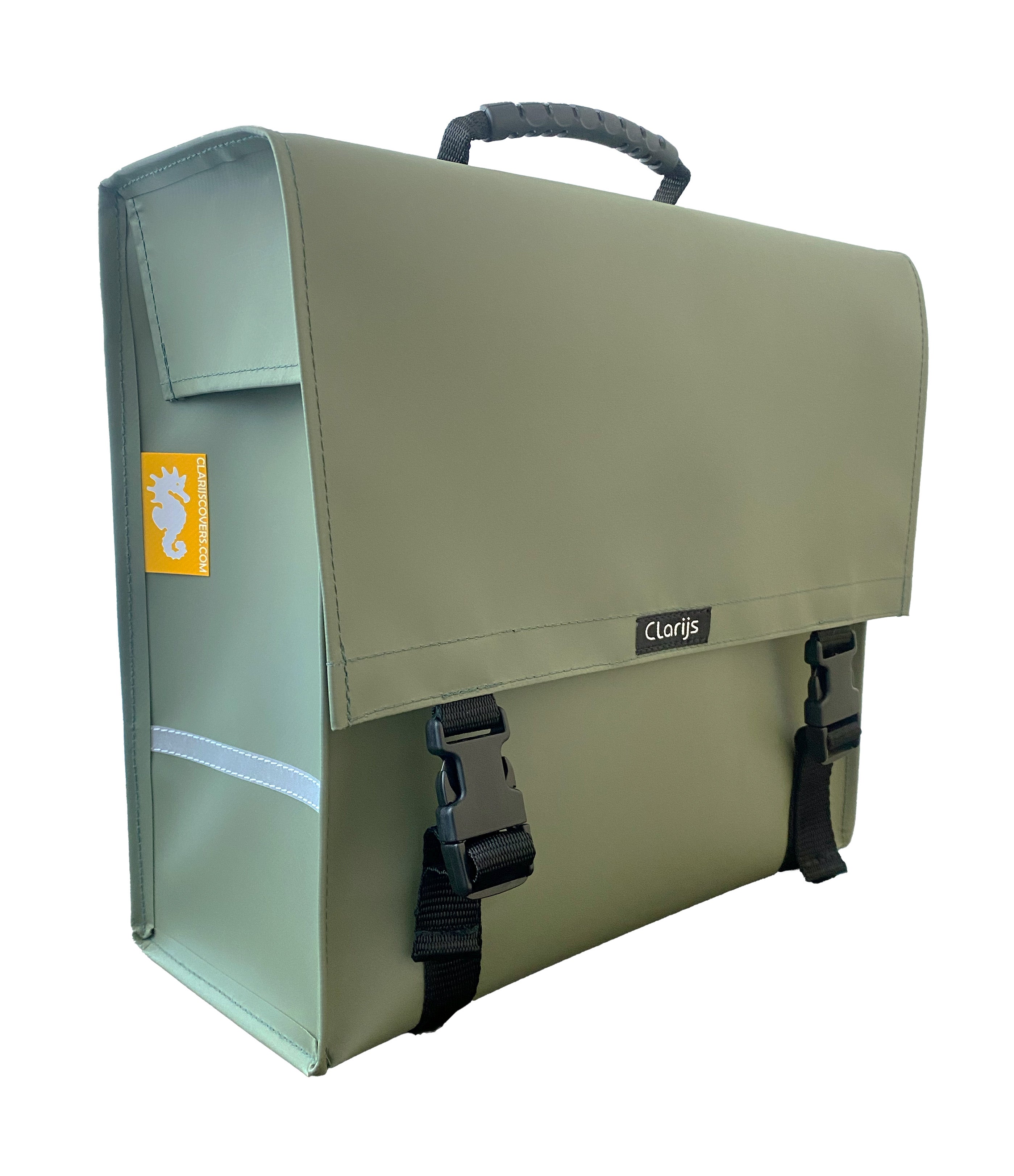 Alle tassen in deze collectie zijn gemaakt van Bisonyl PVC stof, ook gebruikt voor de bekleding van vrachtwagens. De stof is ongelooflijk sterk, waterdicht, kleurvast en bestand tegen extreme hitte en kou. De gespen zijn van een hoogwaardige flexibele kunststof, die met een flexibele waterafstotende PP-band aan de tas zijn bevestigd.