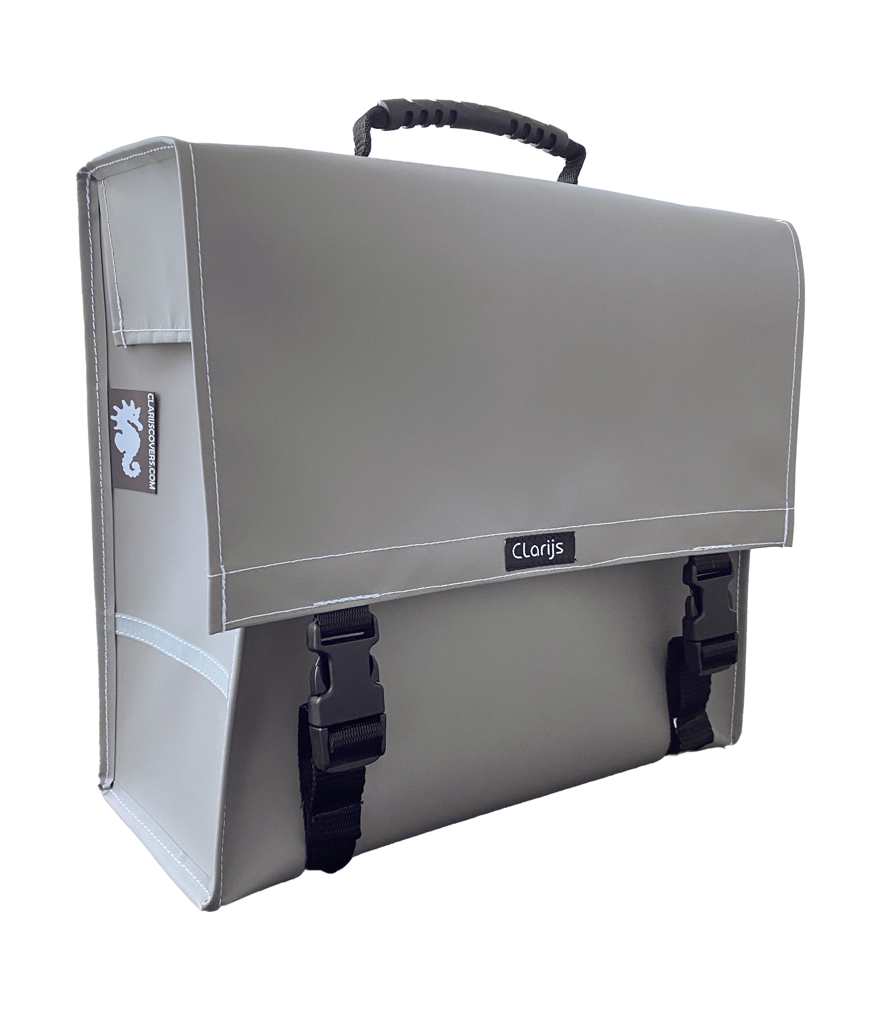Alle tassen in deze collectie zijn gemaakt van Bisonyl PVC stof, ook gebruikt voor de bekleding van vrachtwagens. De stof is ongelooflijk sterk, waterdicht, kleurvast en bestand tegen extreme hitte en kou. De gespen zijn van een hoogwaardige flexibele kunststof, die met een flexibele waterafstotende PP-band aan de tas zijn bevestigd.