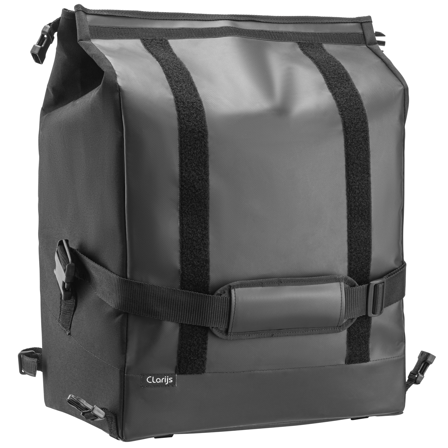 De Front bag Premium is een handgemaakte multifunctionele fietstas, speciaal gemaakt voor stuurrekken. Hij heeft handvatten aan de bovenkant en wordt geleverd met een afneembare schouderband, net als de Clarijs Solobag. Dit maakt de tas erg handig voor meerdere doeleinden. Het sluitsysteem van de Front bag is uitgevoerd met een magnetische band, waardoor hij ongelooflijk gemakkelijk te openen en te sluiten is, perfect geschikt voor het doen van boodschappen of boodschappen. De bodem en zijkanten zijn versterkt met gerecycleerde plastic platen voor extra stevigheid.