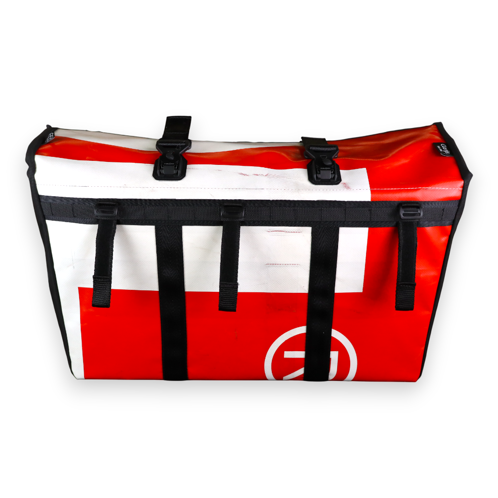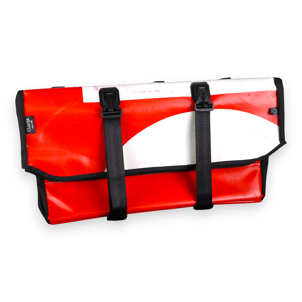 Deze Longtail fietstas is handgemaakt van sterk en volledig waterdicht reCYCLEd vrachtwagendoek. Het magnetische Fidlock-sluitingssysteem zorgt voor snel en betrouwbaar openen en sluiten, terwijl de verstevigde achterplaat en opvouwbare bodem extra stabiliteit bieden, ook bij zware belading.